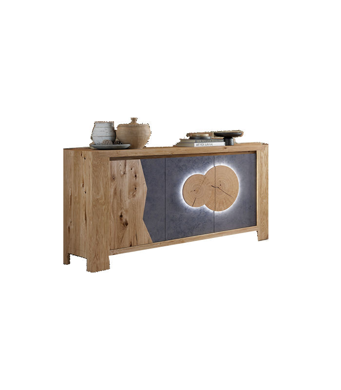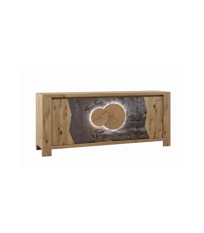 Joues de côté : médium hydrofuge plaqué chêne sauvage.