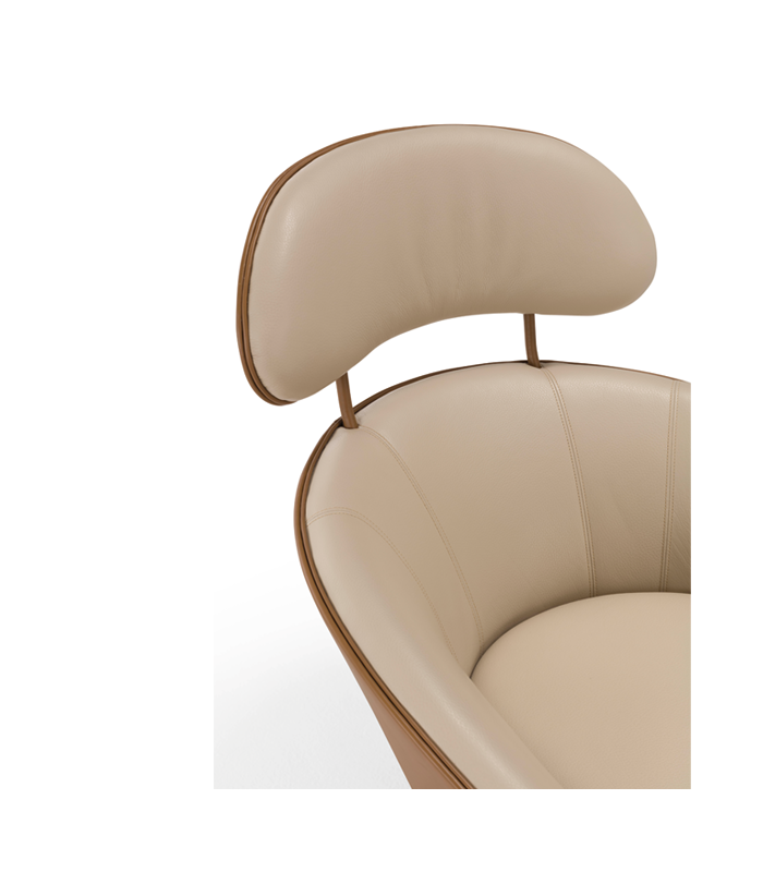 Coque extérieure et têtière en fibre de bois courbée.