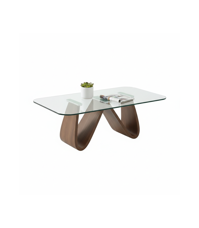 Plateau en verre et piétement noyer