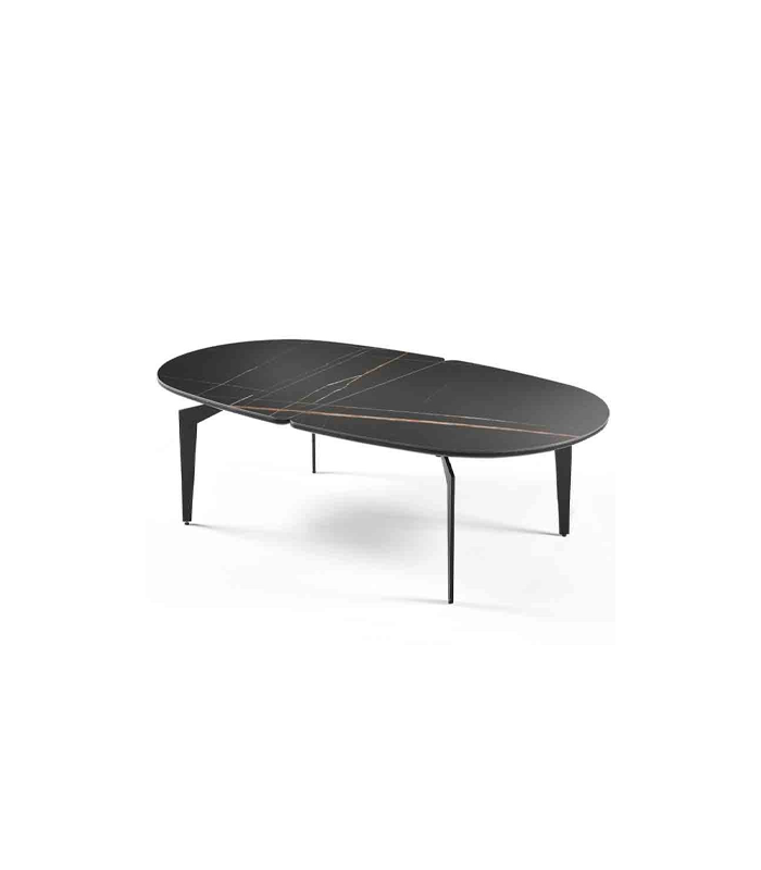 Piétement en métal laqué époxy noir, plateau en MDF recouvert de céramique